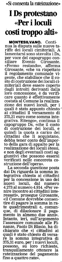 Costo loculi alto - Evenio Giorsante