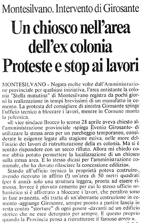 Un chiosco nell'area dell'ex Colonia - Evenio Giorsante