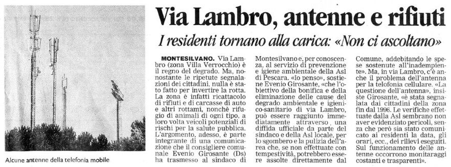 Via Lambro, antenne e rifiuti - Evenio Giorsante